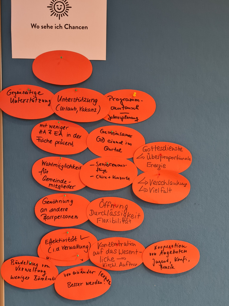 Am 31.01.2026 fand ein erstes Treffen von Kirchenvorstandsmitgliedern und Hauptamtlichen statt. Nach einer Vorstellung der verschiedenen Gemeinden und ihrer Schwerpunkte haben wir diskutiert, welche Chancen unser Regionalraum bietet, welche Risiken es gibt und welche Möglichkeiten der Zusammenarbeit wir sehen.